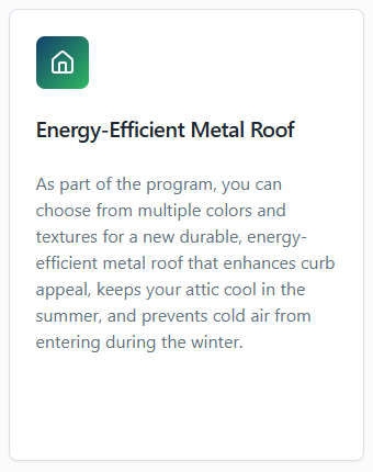 Upgrade to an energy-efficient roof designed to protect your home year-round—keeping cold air out in the winter and blocking heat from entering through the attic in the summer. Choose from advanced shingles or premium metal roofing options that improve comfort, durability, and long-term savings.